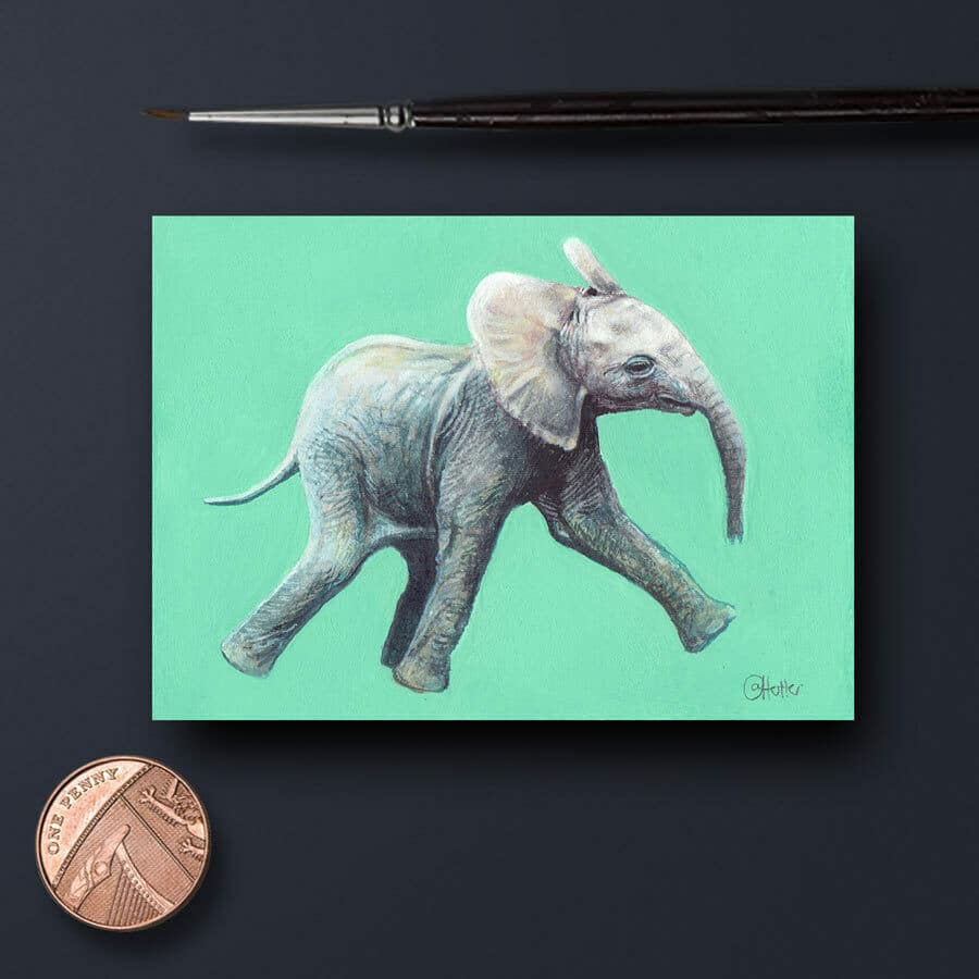 In honour of my wife, on her birthday, this painting is of a happy young elephant I’ve titled “Heffalump” from the “Winnie The Poo” stories.